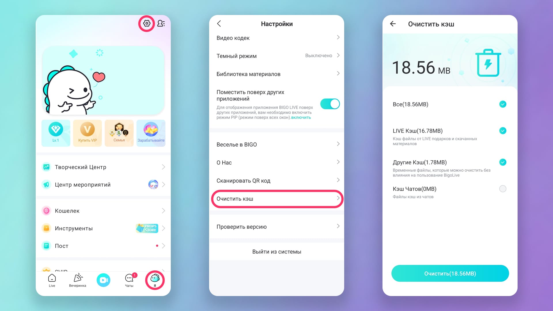 Как очистить кэш в BIGO LIVE