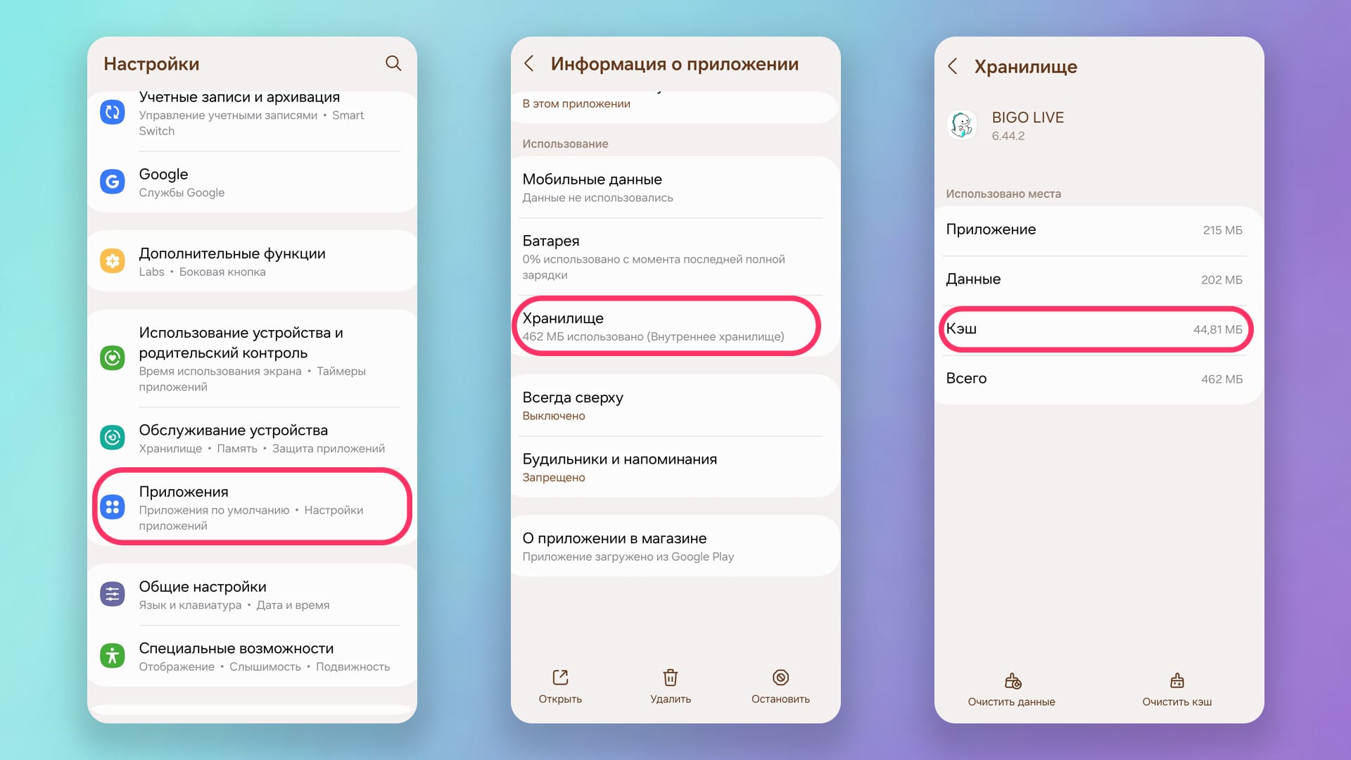 Если вы не можете зайти в приложение (например, биго лайф не работает или вылетает при запуске), можно очистить кэш через настройки Android или iOS.